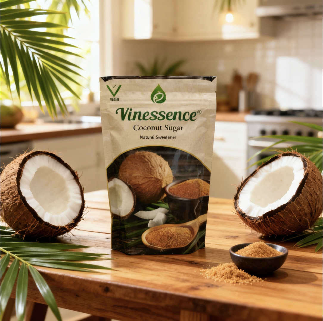 Experience the pure, earthy sweetness of nature with Vinessence Coconut Sugar - made from fresh coconut sap and carefully processed to retain its natural minerals and caramel-like flavor. A perfect, healthy alternative to refined white sugar - ideal for your tea, coffee, desserts, and everyday cooking🌿