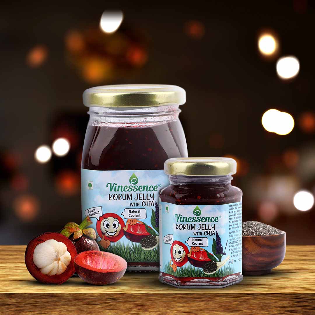 Chia seeds are considered a powerhouse of Omega 3 fatty acids and superior quality gluten-free proteins. Vinessence has succeeded in creating a blend of Chia seeds and Garcinia Indica, also known as Kokum, which is widely recognized as a potent antioxidant and natural coolant. The combination of Kokum and Chia seeds creates a perfect blend of essential nutrients, including Omega 3 fatty acids, proteins, vitamin C, and fibre, that are vital for promoting good health and vitality.