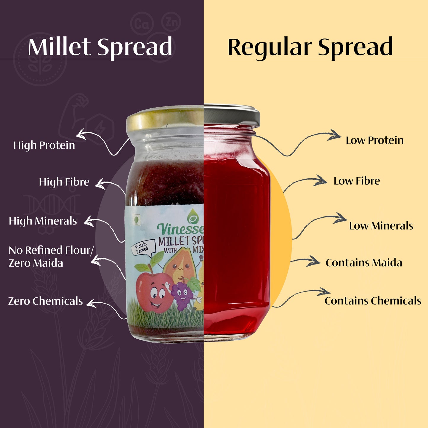 Millet Peanut Spread with Chocolate is a unique combination of millets, protein-rich peanuts, and delectable chocolate, which makes for a perfect spread that satisfies both taste and nutrition. The millets provide essential nutrients like fibre, minerals, and vitamins, while the peanuts provide a rich source of plant-based protein and fats. The addition of chocolate not only enhances the taste but also adds a touch of indulgence. This Millet Peanut Spread with Chocolate is a guilt-free way to enjoy a nutritious and delicious snack that will energize you for the day ahead.