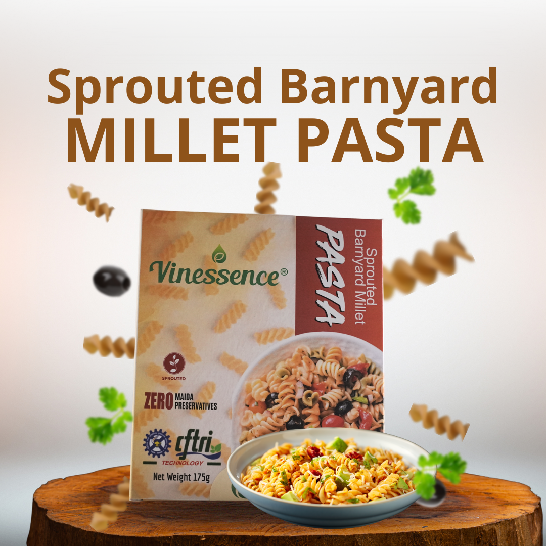 Sprouted Barnyard Millet pasta is a healthy and tasty option for those who are looking for a nutritious alternative to traditional pasta. This Pasta is made from Sprouted Barnyard Millet Flour and Durum Wheat, which gives them a unique texture and flavour and are free from refined wheat flour/white flour/all-purpose flour/maida, artificial colours, flavours or preservatives.